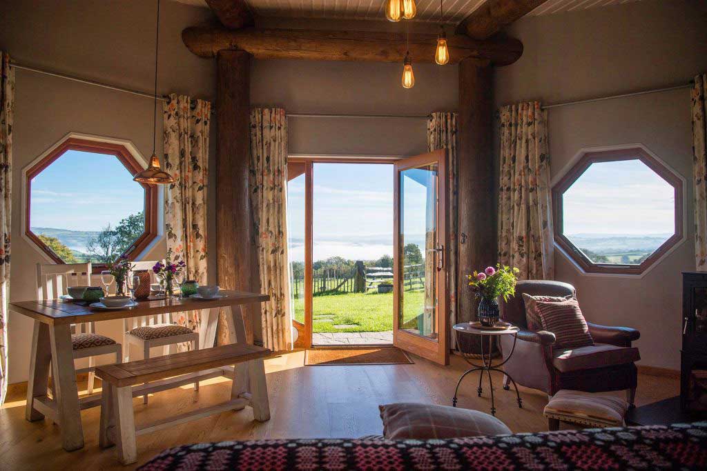 Make luxury eco glamping a favourite here for romantic breaks in an organic farm meadow setting.